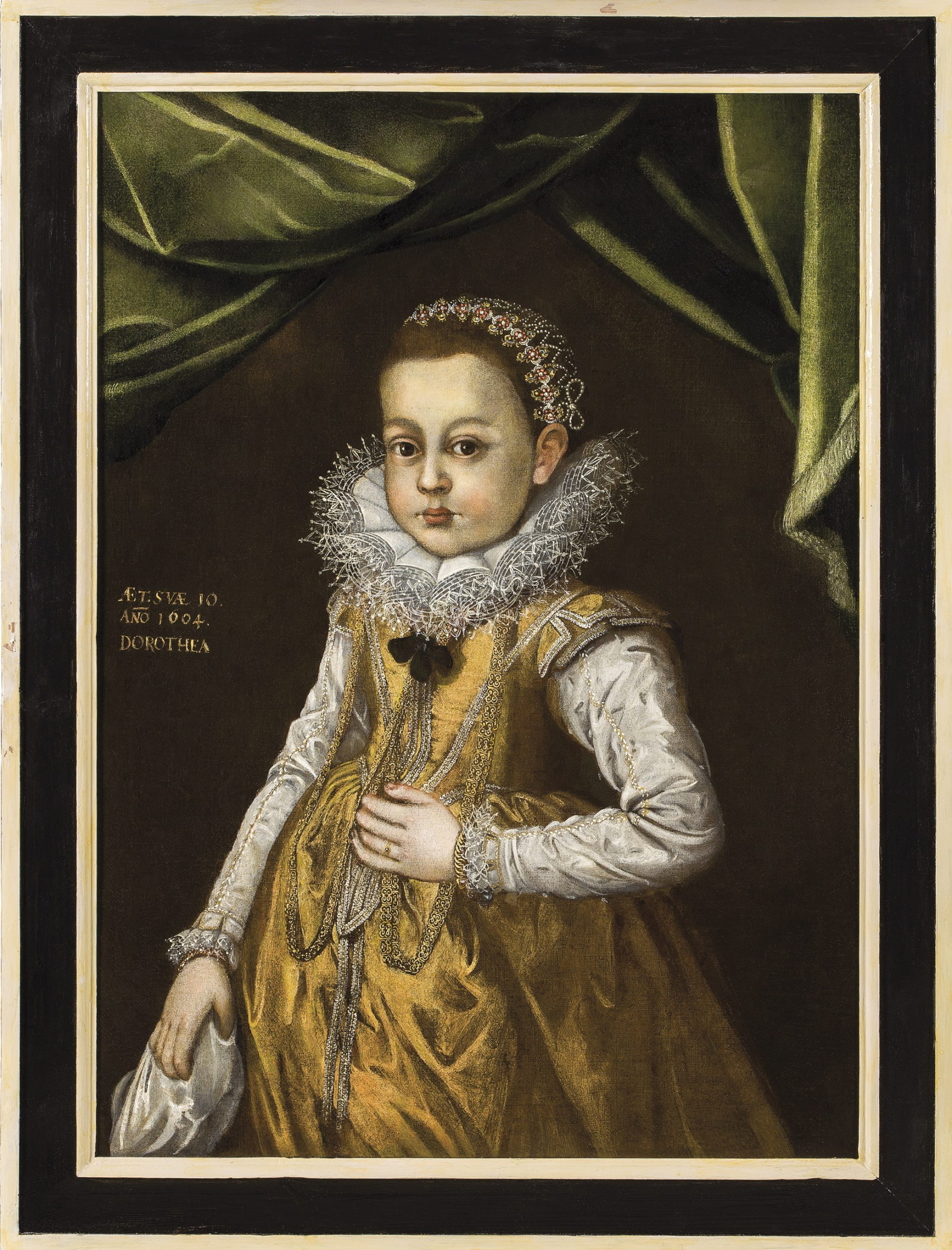 Anonym, dětský portrét Dorotey, dcery Adama z Hradce, olejomalba, 1604; ze sbírky Národního památkového ústavu, ÚPS v Č. Budějovicích, SH Rožmberk